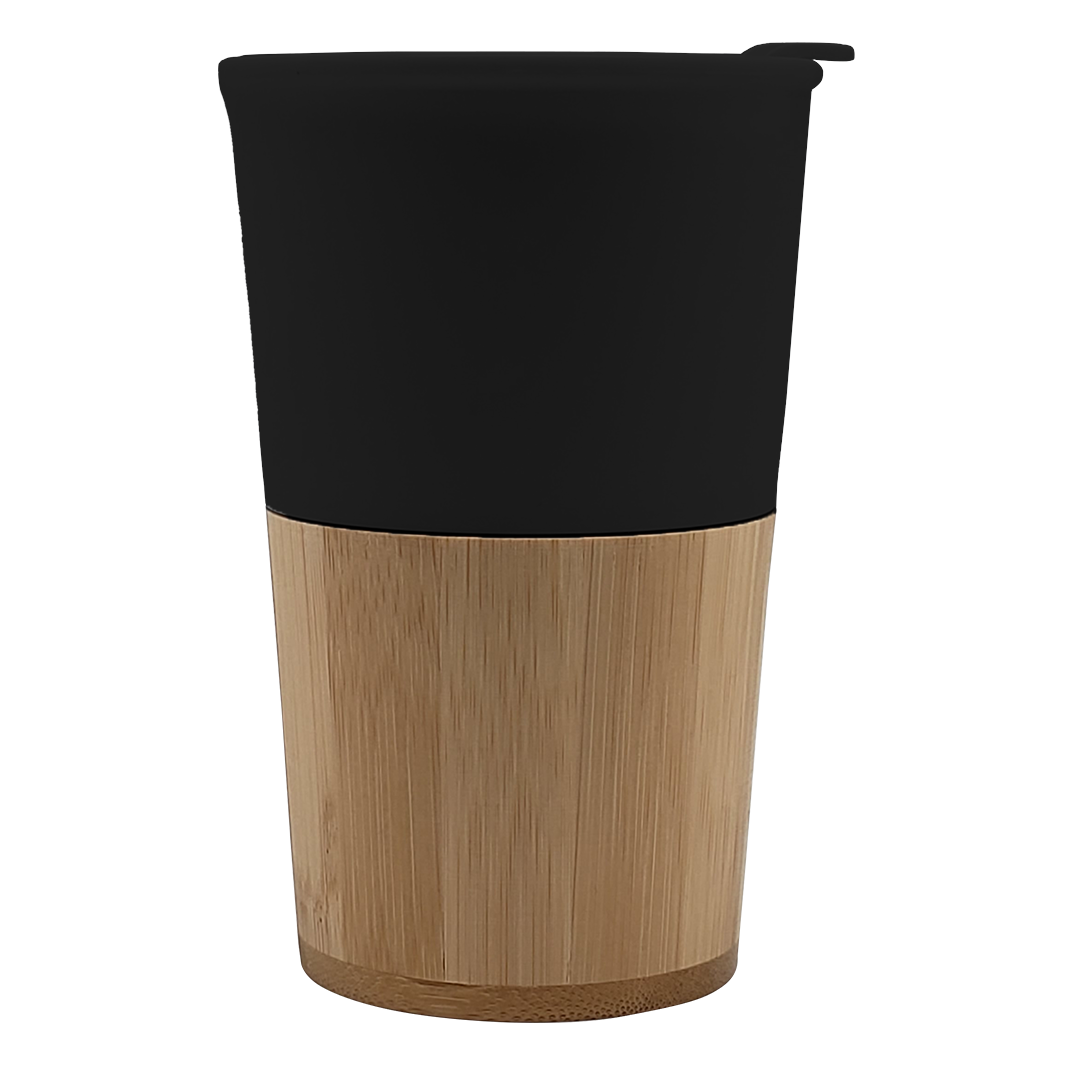 VASO NEGRO CON BASE BAMBOO